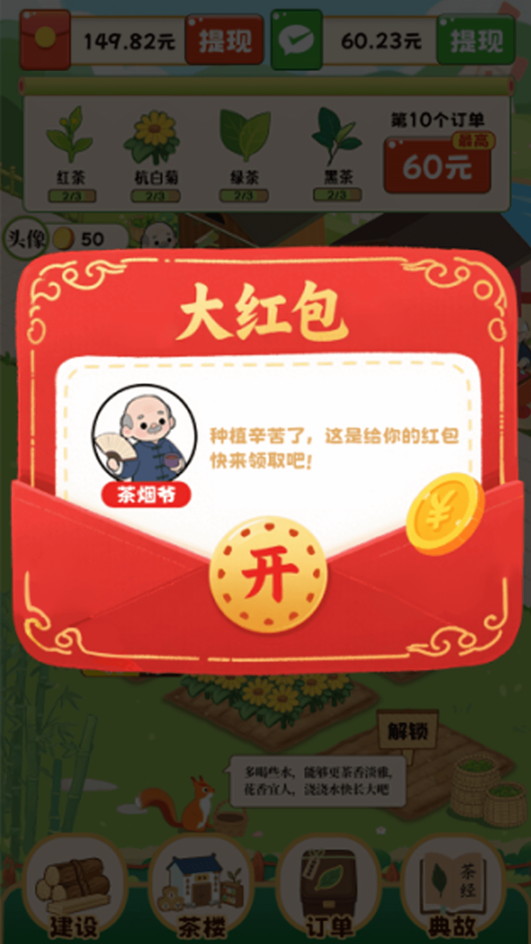 种一片茶园,收一筐茶叶!开局领小菜地,浇水、施肥、除虫,看茶叶等慢慢长大,收获时成就感拉满。