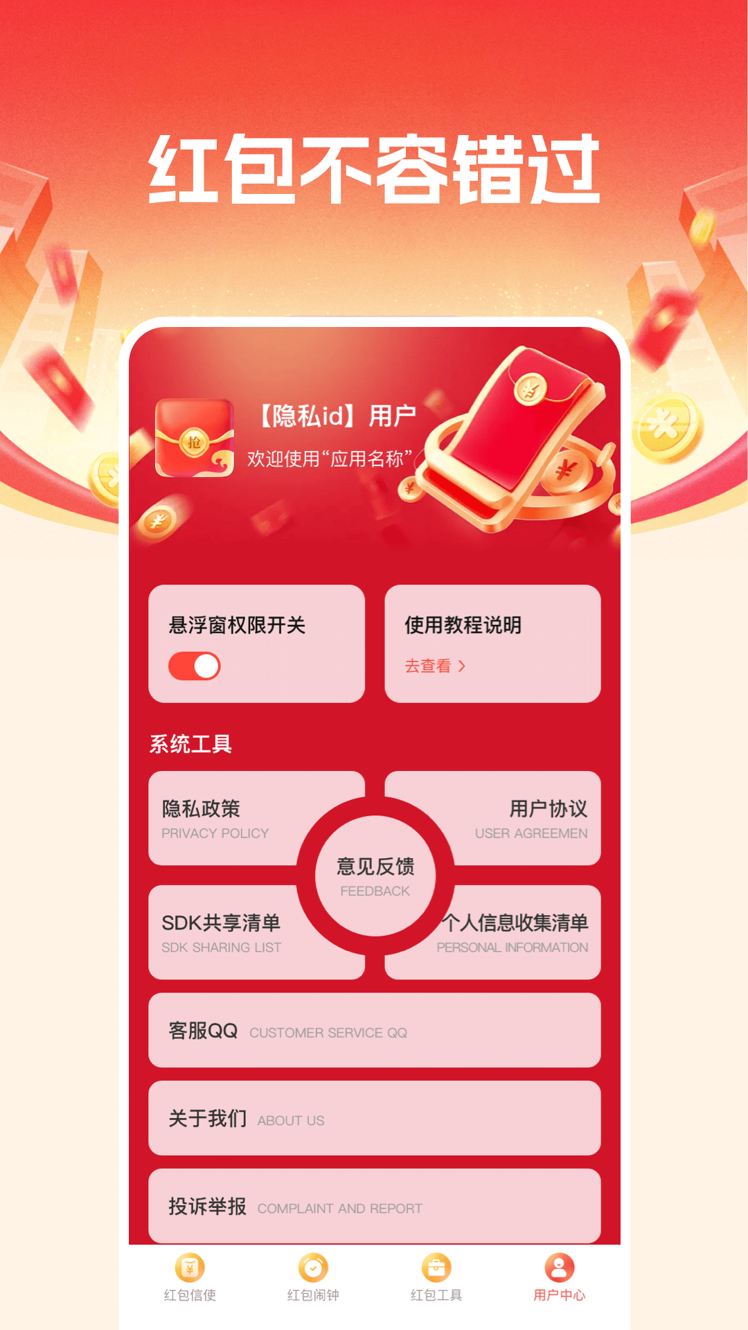 这款应用的核心功能为「红包信使」,开启后可双重助力抢红包:一是第一时间推送红包消息,二是同步生成快捷入口,点击直接跳转至红包位置,省去繁琐操作; 此外,应用还提供多重个性化与实用工具: 红包信使个性化设置:用户可自主选择通知音效、自定义提醒效果,打造专属提醒体验; 红包闹钟与悬浮工具:红包闹钟支持自定义设置与提醒,搭配 “悬浮显时” 和 “计时随行” 工具 —— 计时随行可精准把控抢包倒计时,悬浮显时则实时显示当前时间,二者在红包发放等场景下持续悬浮屏幕,且不遮挡操作区域,为抢红包提供直观时间参考,进一步提升抢包效率与成功率; 红包辅助工具:包含金额大小写转换、红包记账本功能,满足用户金额核对与红包记录需求。